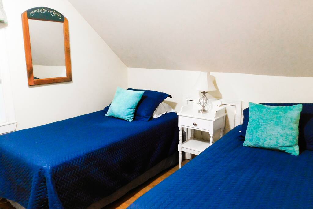 🛏️ Sleeping Arrangements: 1st Floor: 2 bedrooms each with 1 Queen bed 2nd Floor: Master bedroom with a King bed + walk-in closet and dresser; Second bedroom with 2 Twin beds Extra clean linens for every bed are available in the upstairs linen closet. 🛁 Bathrooms: 1st Floor: 3/4 bathroom with a shower stall 2nd Floor: Full bathroom with tub ❄️ Comfort Features: 3 Window A/C units: Kitchen, 1st-floor Queen bedroom, 2nd-floor Twin bedroom Ceiling fans: In Master bedroom, 1st Floor Queen bedroom (same room with A/C), and 2nd floor Twin bedroom Indoor gas fireplace for cozy evenings 🍽️ Kitchen & Dining: Fully equipped with an electric stove with oven, dishwasher, Keurig (with K-Cups, creamer & sugar provided), Air-fryer and Crock-pot Dining table with 4 chairs, 2 bar stools at the kitchen island, plus 2 additional folding chairs in the closet 📺 Entertainment: Streaming TVs in the Kitchen, Living room, Master bedroom, and Twin bedroom A great selection of board games, books, coloring books, and family favorites like Monopoly and Cribbage